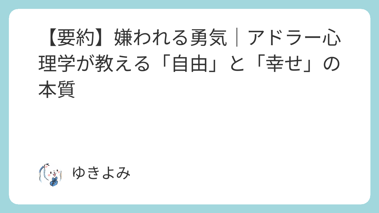 『嫌われる勇気』は、世界的に注目されるアドラー心理学をわかりやすく物語形式で解説した一冊。